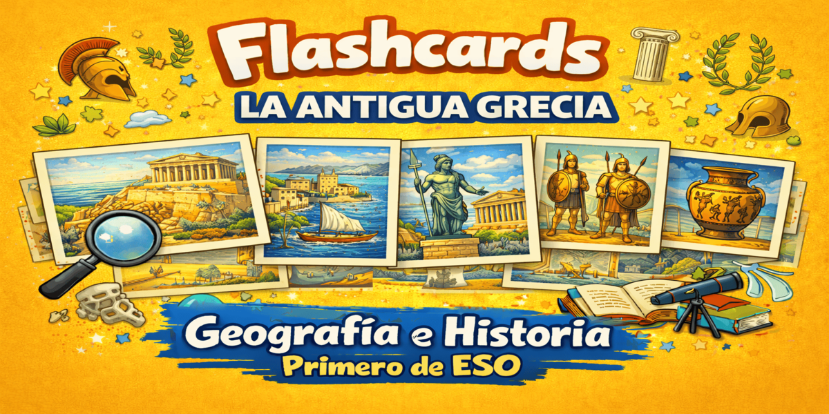 Este recurso educativo reúne un conjunto de flashcards o tarjetas de estudio sobre la Antigua Grecia, diseñado para la asignatura de Geografía e Historia de 1º de ESO. A través de preguntas y respuestas breves, el alumnado puede repasar los aspectos clave de la civilización griega, como su organización política, economía y cultura. Es un …
