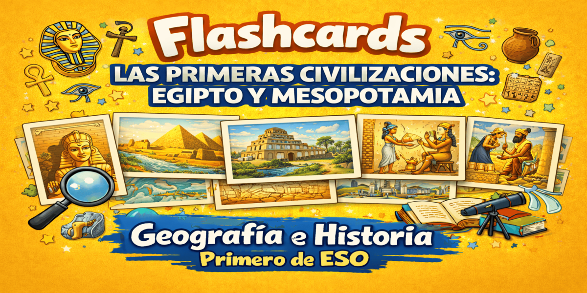 Estas flashcards de Geografía e Historia para 1.º de ESO están diseñadas para ayudar al alumnado a aprender y repasar los conceptos fundamentales relacionados con los medios naturales del planeta y los recursos que ofrecen. A través de preguntas y respuestas breves, el alumnado puede comprender qué es un paisaje, cuáles son sus elementos naturales …