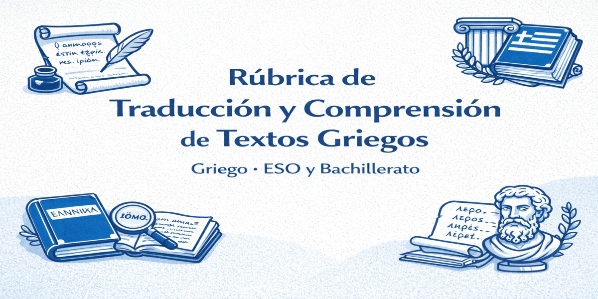 Esta rúbrica de evaluación está diseñada para valorar la traducción y comprensión de textos griegos en la asignatura de Griego, tanto en ESO como en Bachillerato. El recurso permite evaluar de forma clara y objetiva la comprensión global del texto, el análisis morfosintáctico, la calidad de la traducción y la contextualización cultural, en coherencia con …