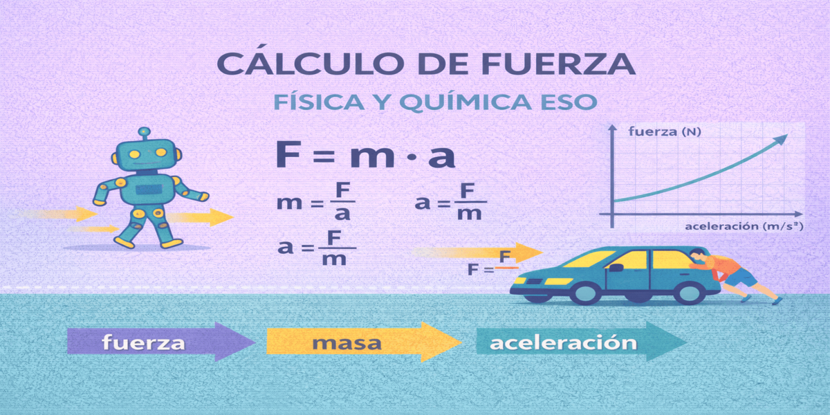 Este material está diseñado para que el alumnado de Física y Química en ESO practique el cálculo de la fuerza a partir de la segunda ley de Newton, una de las bases fundamentales de la dinámica.Mediante ejercicios numéricos claros y progresivos, el alumnado aprende a relacionar correctamente fuerza, masa y aceleración, aplicando las fórmulas y …