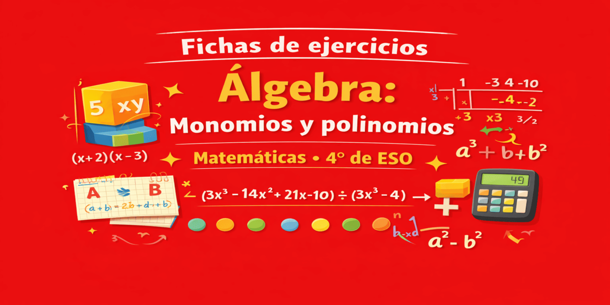 Este conjunto de fichas de ejercicios está orientado al trabajo y consolidación de los contenidos de álgebra relacionados con monomios y polinomios en la materia de Matemáticas de 4º de ESO.El material permite afianzar los procedimientos algebraicos fundamentales, mejorar la manipulación simbólica y desarrollar el razonamiento matemático necesario para abordar con seguridad contenidos posteriores del …
