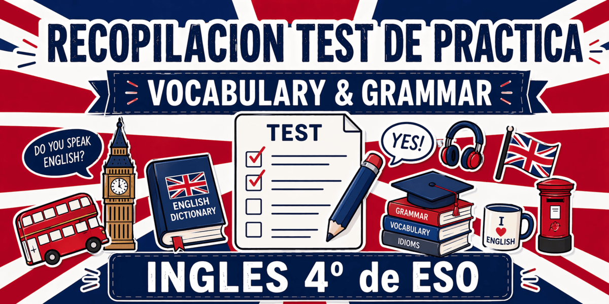 Esta recopilación de test de práctica de Inglés para 3.º de ESO reúne materiales organizados por unidades para trabajar de forma progresiva el vocabulario (Vocabulary) y la gramática (Grammar). Es un recurso ideal para reforzar contenidos, consolidar estructuras del idioma y preparar exámenes mediante actividades prácticas y contextualizadas. ¿Qué incluye este material? Unidad 1 – …