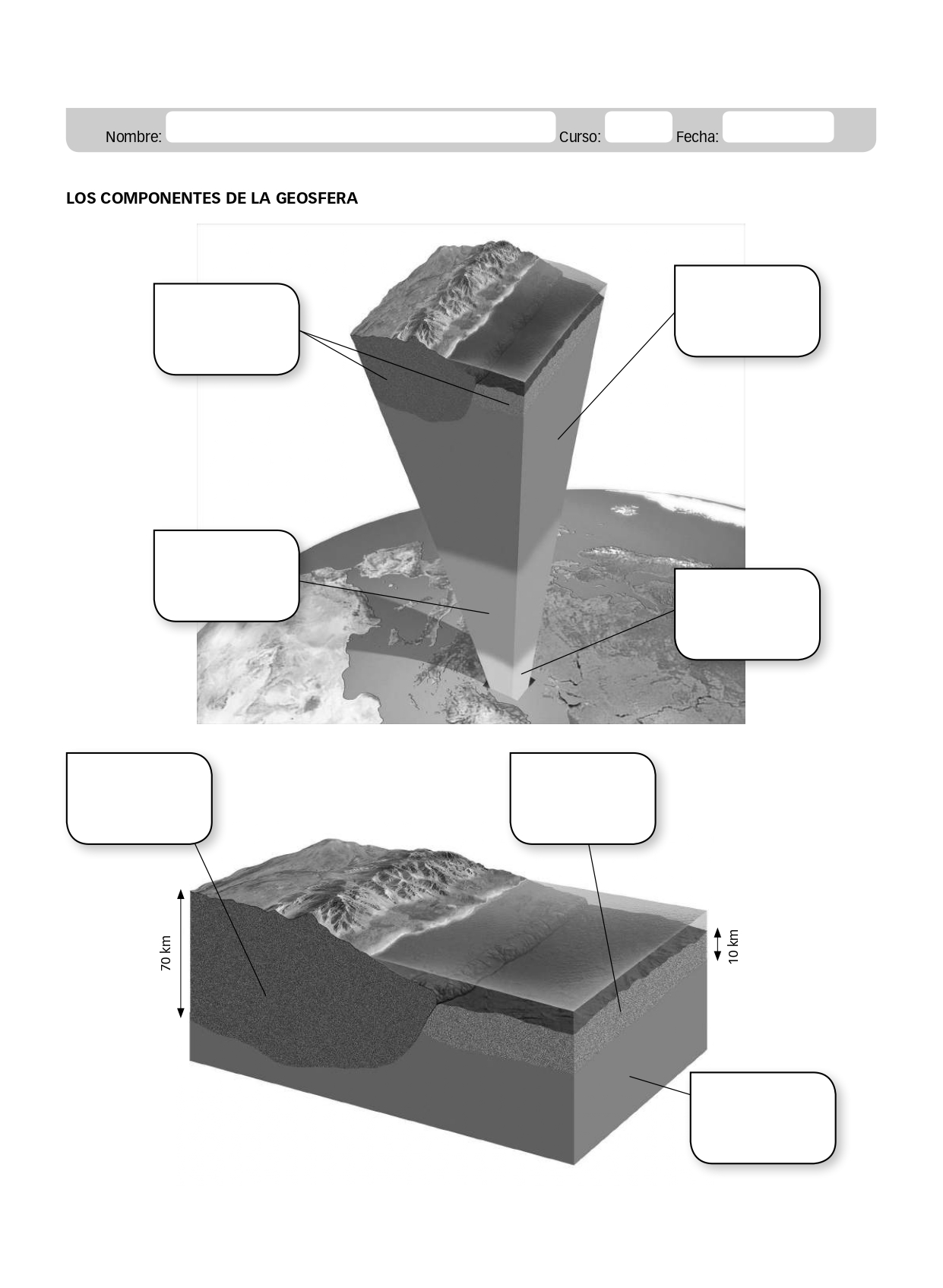 Geosfera: fichas sobre las capas internas de la Tierra, tipos de relieve, escala de Mohs y clasificación de rocas.