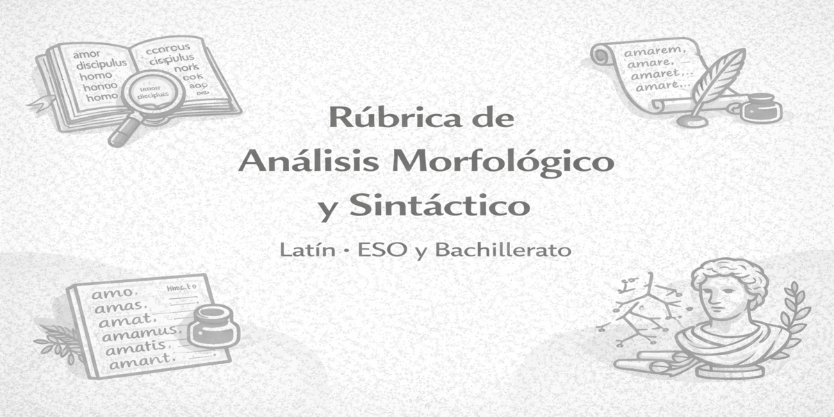 Esta rúbrica de evaluación está diseñada para valorar de forma clara y sistemática el análisis morfológico y sintáctico en la asignatura de Latín, tanto en ESO como en Bachillerato. El recurso permite evaluar la correcta identificación de formas gramaticales, el reconocimiento de funciones sintácticas y la aplicación de las reglas morfosintácticas propias de la lengua …