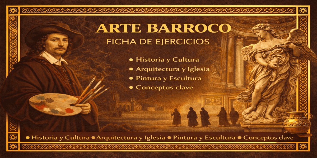 Esta ficha de ejercicios está pensada para trabajar de forma activa los contenidos fundamentales del Arte Barroco en la asignatura de Historia del Arte en ESO. A través de actividades variadas, el alumnado podrá comprender las características del Barroco, sus principales artistas, conceptos clave y el análisis de obras representativas de este periodo artístico. ¿Qué …