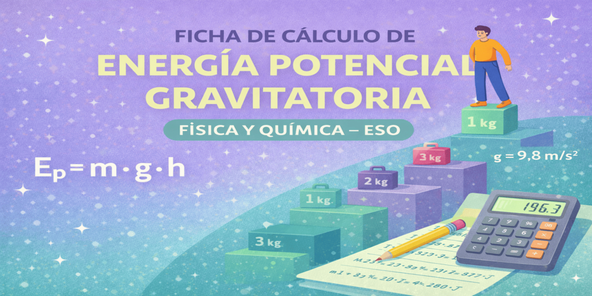 Este material es una ficha de ejercicios de cálculo pensada para trabajar la energía potencial gravitatoria en la asignatura de Física y Química en Educación Secundaria Obligatoria. Resulta especialmente útil para afianzar la aplicación de la fórmula matemática y practicar con distintos valores de masa y altura de forma progresiva y sistemática. ¿Qué incluye este …