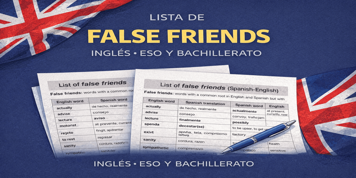 Este material es una lista de false friends pensada para trabajar uno de los aspectos más habituales y problemáticos del aprendizaje del inglés en ESO y Bachillerato. Permite al alumnado identificar palabras que se parecen al español, pero que tienen significados diferentes, evitando errores frecuentes en la comprensión y expresión escrita. ¿Qué incluye este material? …