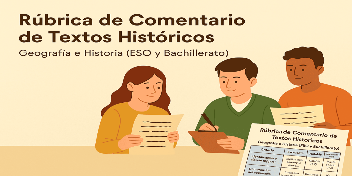 Categoría: 1º BACH Historia del Mundo Contemporáneo, 1º ESO Geografía e Historia, 2º BACH Geografía, 2º BACH Historia de España, 2º ESO Geografía e Historia, 3º ESO Geografía e Historia, 4º ESO HistoriaEtiqueta: análisis crítico, análisis documental, aprendizaje competencial, Autoevaluación, bachiller, Bachillerato, coevaluación, comentario de texto, competencias históricas, comprensión lectora, Educación, educación secundaria, ejercicios, ESO, estudiar, evaluación LOMLOE, geografía e historia, innovación educativa, obligatoria, pensamiento histórico, razonamiento crítico, RECURSOS, recursos educativos, redacción, repasar, rúbrica, SECUNDARIA, textos históricos