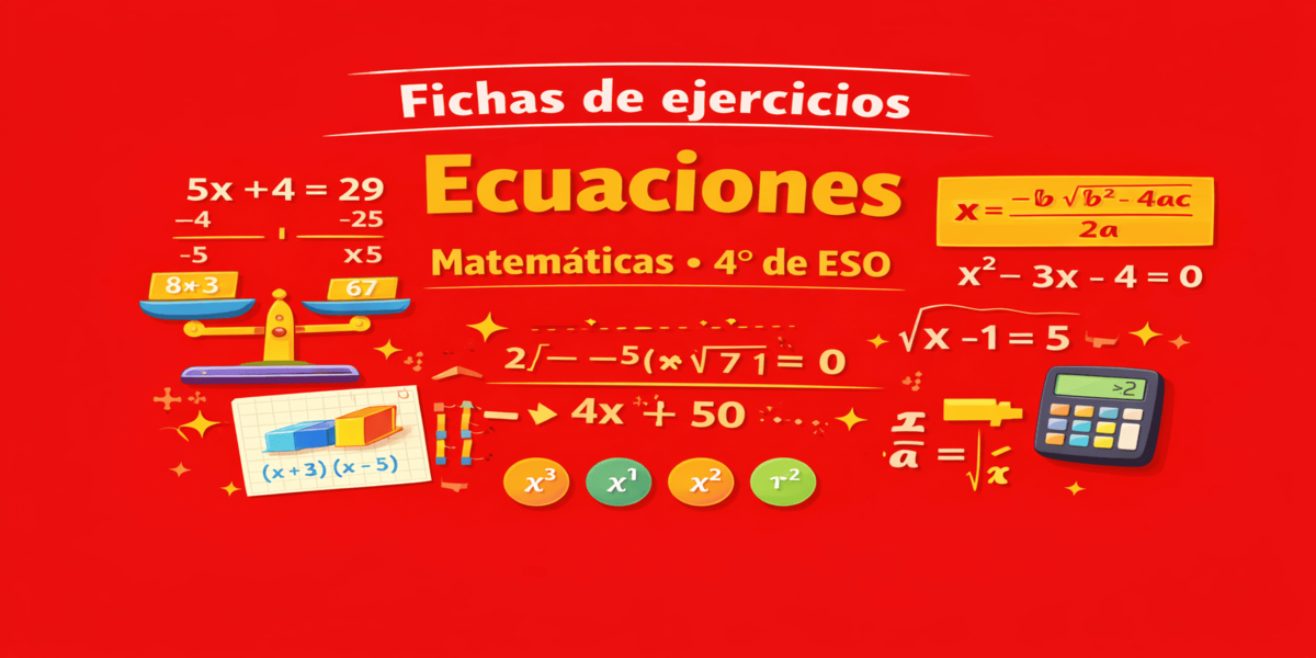 Este conjunto de fichas de ejercicios está orientado al trabajo sistemático de las ecuaciones en la materia de Matemáticas de 4º de ESO.El material permite al alumnado comprender, resolver y analizar distintos tipos de ecuaciones, desde las más sencillas hasta las de mayor complejidad, favoreciendo el razonamiento algebraico y la correcta aplicación de procedimientos, en …
