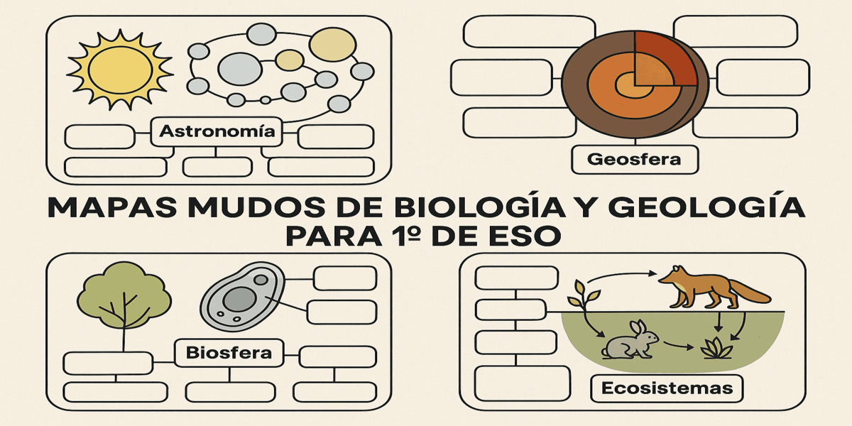 En esta entrada reunimos en un solo lugar todos los mapas mudos de Biología y Geología para 1º de ESO que hemos compartido en el blog. Son un recurso perfecto para trabajar en clase o en casa, ya que permiten al alumnado practicar la localización, memorización y comprensión de los diferentes bloques de contenidos de …